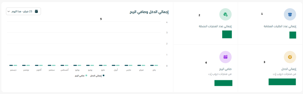 • تشوف إجمالي الطلبات والإيرادات والأرباح بشكل مباشر