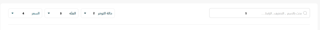 أدوات البحث والفلترة داخل قائمة المنتجات
