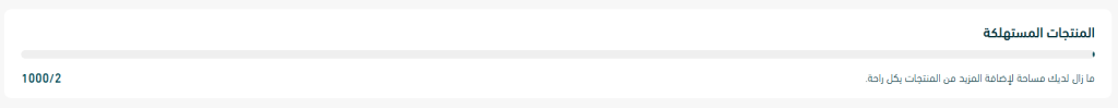 الرقم الثاني — مثل 1000 — يمثل الحد الأقصى لعدد المنتجات اللي مسموح لك ترفعها حسب باقتك.
