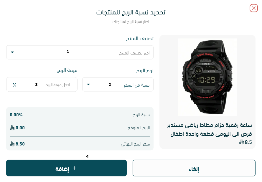 تضغط على زر الإضافة، وهنا يتم رفع المنتج رسميًا إلى متجرك ويصير متاح للبيع.